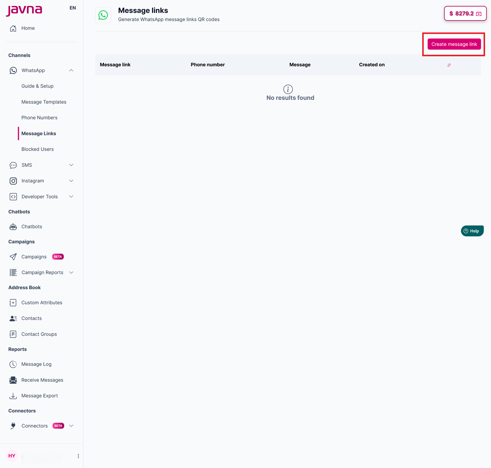- Navigate to the "Message Links" page (refer to this section "Accessing the Message Link" ).