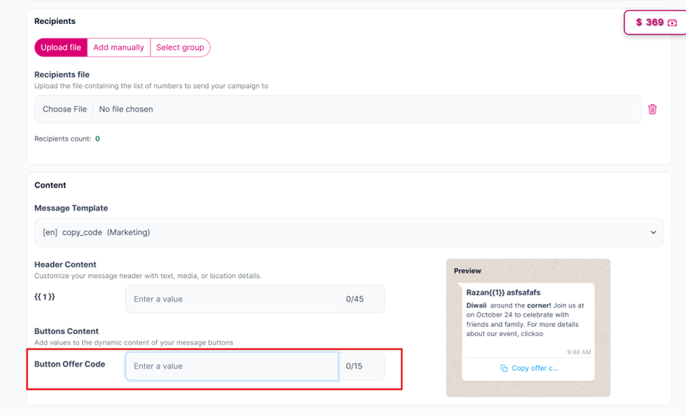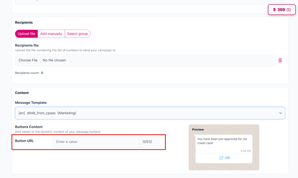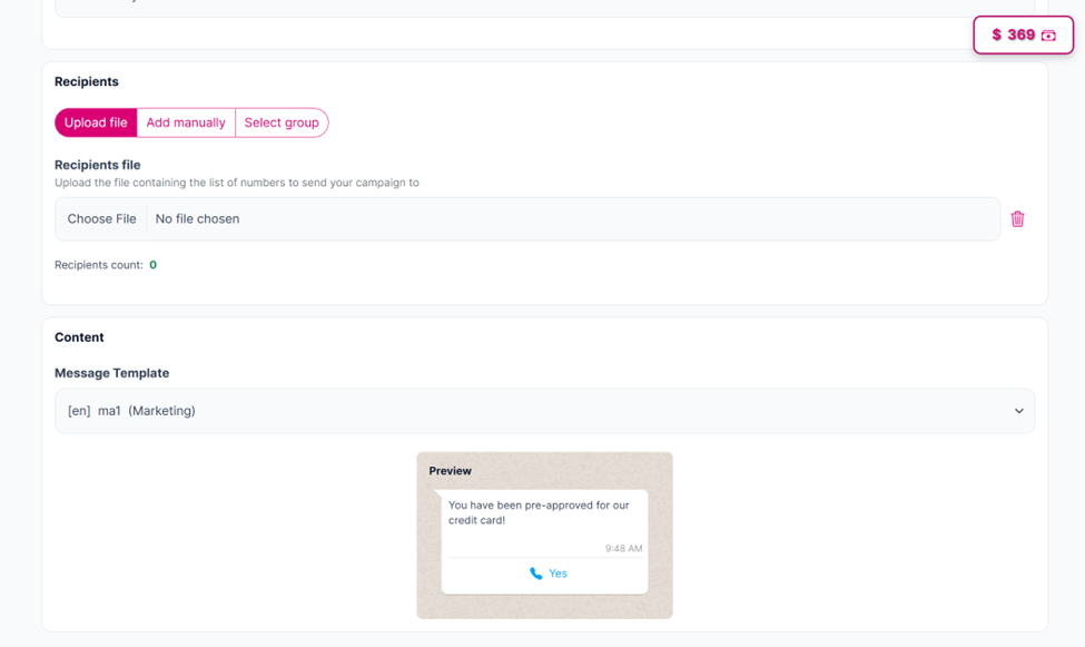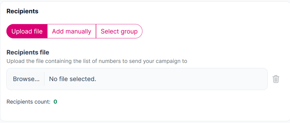 The “Recipients count” will display 0 by default. This will update once you add your recipients.