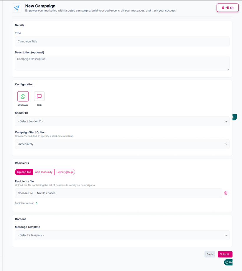 - Review all the details you’ve entered, then click on the “Submit” button to launch your campaign, or click on the “Back” button if you want to discard it.