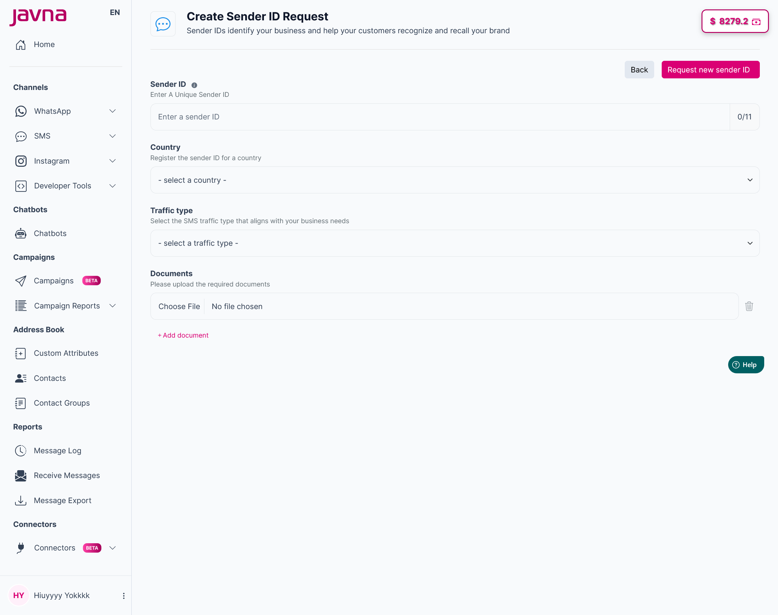 - You will be redirected to the “Create Sender ID Request” page.