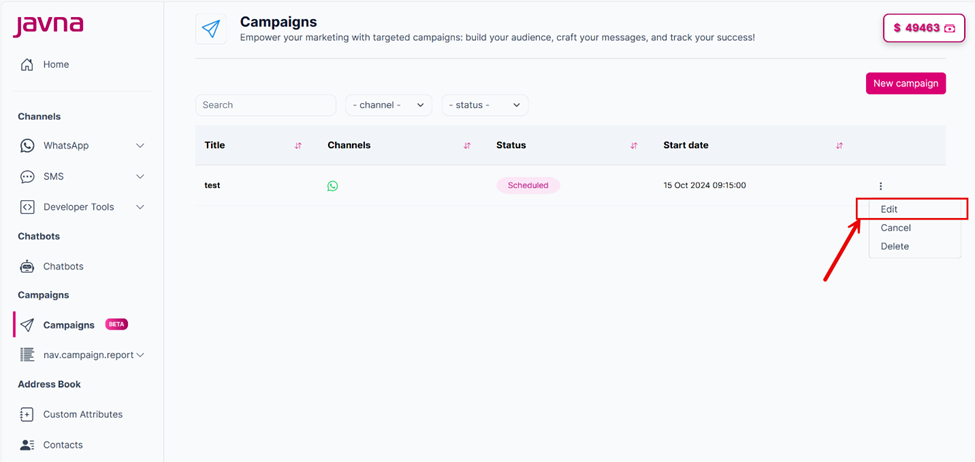 You have two options to edit your “Scheduled” campaign: