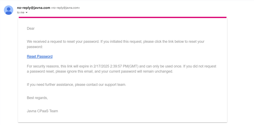 Note: For security reasons, the reset link in this email will expire after one hour and after it is used before.