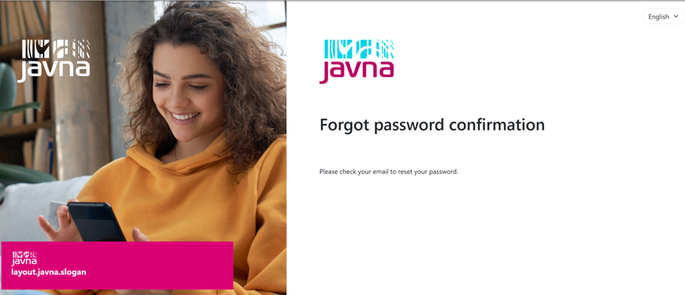 - Confirmation Message: You will be redirected to the Forgot Password Confirmation page, where a message will appear stating: “Please check your email to reset your password.”