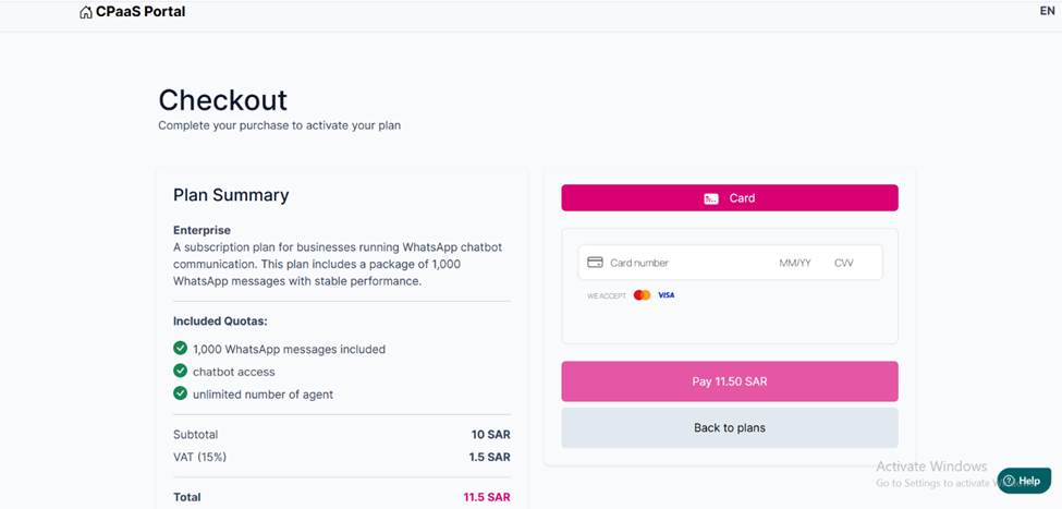 - After payment: • Your plan is activated immediately. • A confirmation message appears on the screen indicating that the payment was completed successfully. • A confirmation email is sent to notify you of the change (upgrade, downgrade, renewal, or activation).