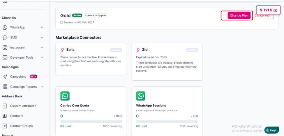 Messages from the new, upgraded plan will appear in WhatsApp Sessions.
