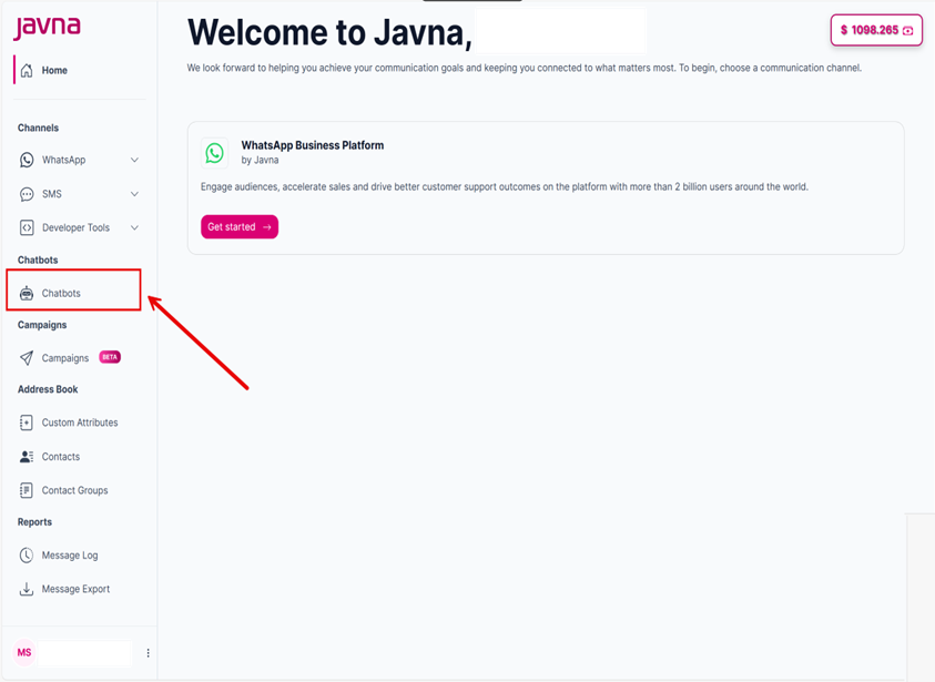 Clicking on the "Chatbots" option.