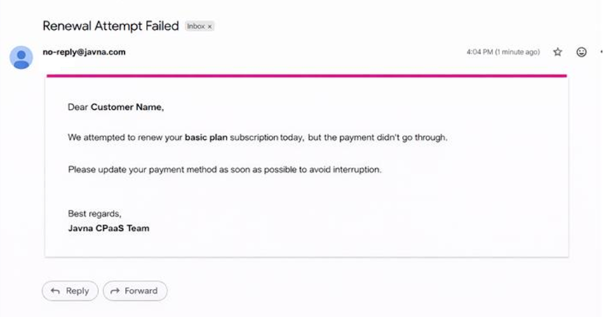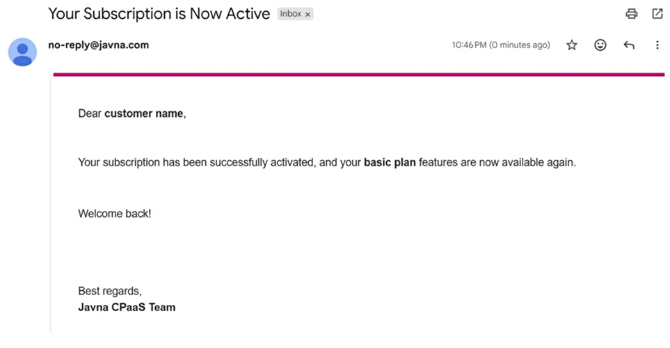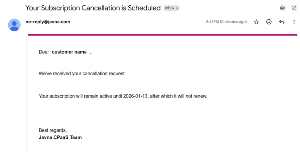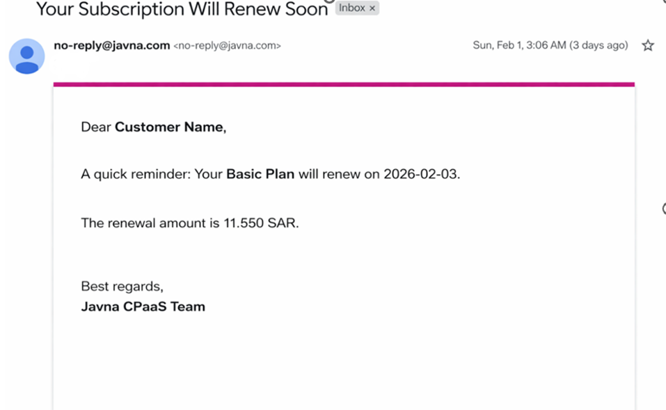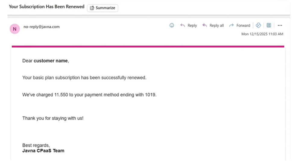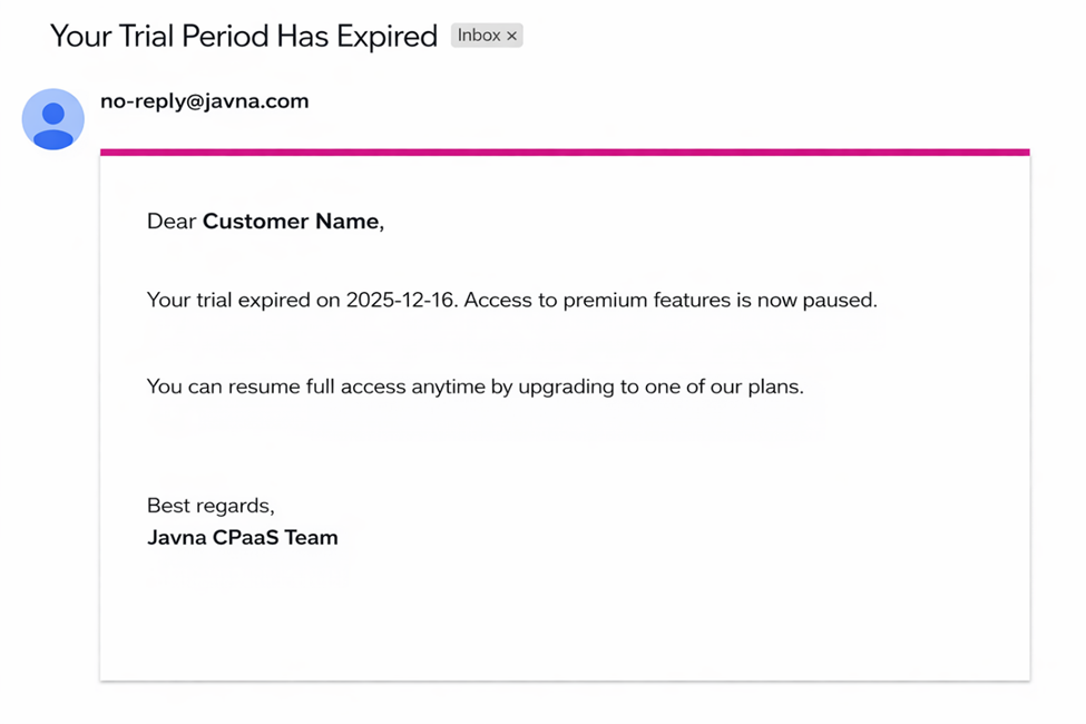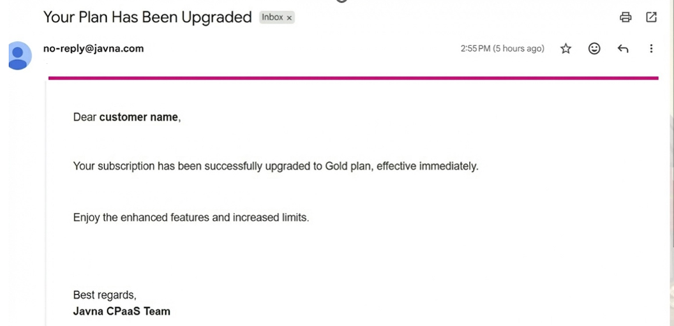 Your account will receive email notifications for various subscription and plan events. These help you stay informed about your plan status and upcoming actions.